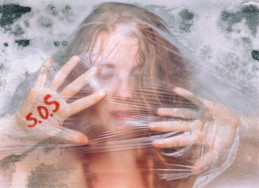 Descripción: Esta imagen representa el aislamiento emocional y físico que puede provocar una enfermedad oncológica cutánea. El plástico translúcido simboliza una segunda piel, deformada y opresiva, que impide respirar con libertad. Las fisuras que la atraviesan recuerdan las heridas visibles e invisibles que deja la enfermedad: lesiones en la piel, pero también en la autoestima y en la conexión con el mundo. Las manos alzadas con un mensaje de auxilio —S.O.S— claman por una pausa al sufrimiento, por comprensión, y por romper esa barrera de silencio que rodea a quienes lo padecen. Esta obra es un grito visual desde la soledad, la ansiedad y el deseo urgente de sanar, no solo el cuerpo, sino también el alma.