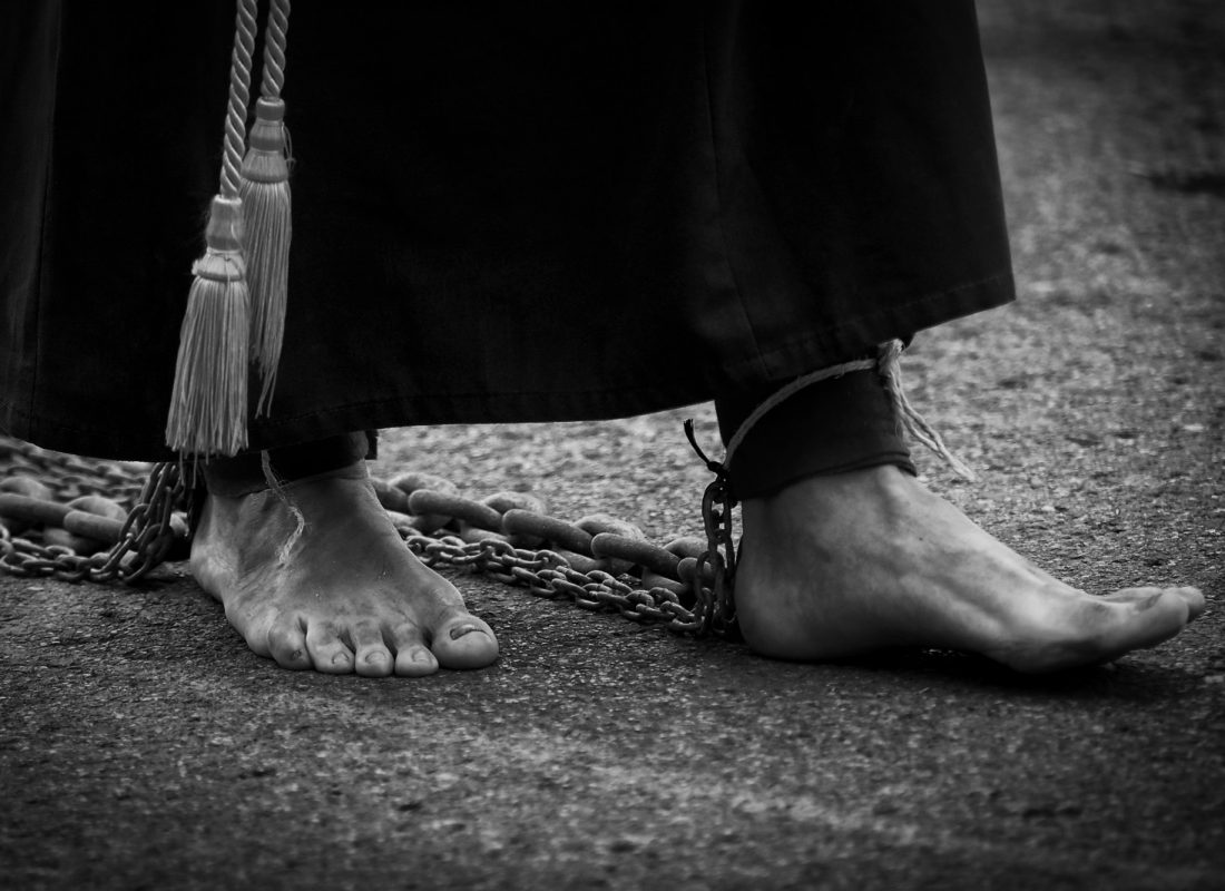 el penitente avanza, marcado, como el cuerpo por el castigo.