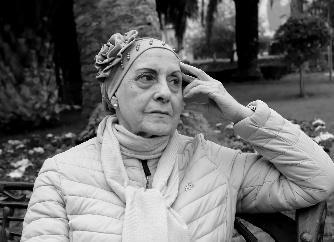 Descripción: Maribel, después de recién terminada el tratamiento de radioterapia, sentada en un banco del paseo de su pueblo, pensando no sabemos si en el presente o en el futuro…